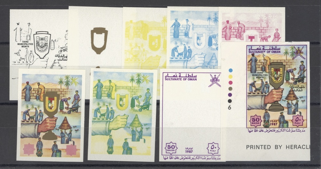 1987 Third Municipalities Month 50b., set of nine imperforate progressive proofs on gummed paper, unmounted mint; fine. S.G. 344P