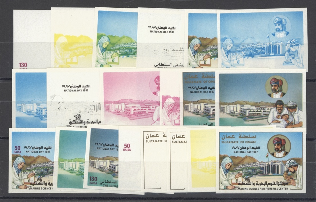 1987 National Day 50b. and 130b., ten imperforate progressive proofs of each value on gummed paper, unmounted mint, fine. S.G. 345-346P
