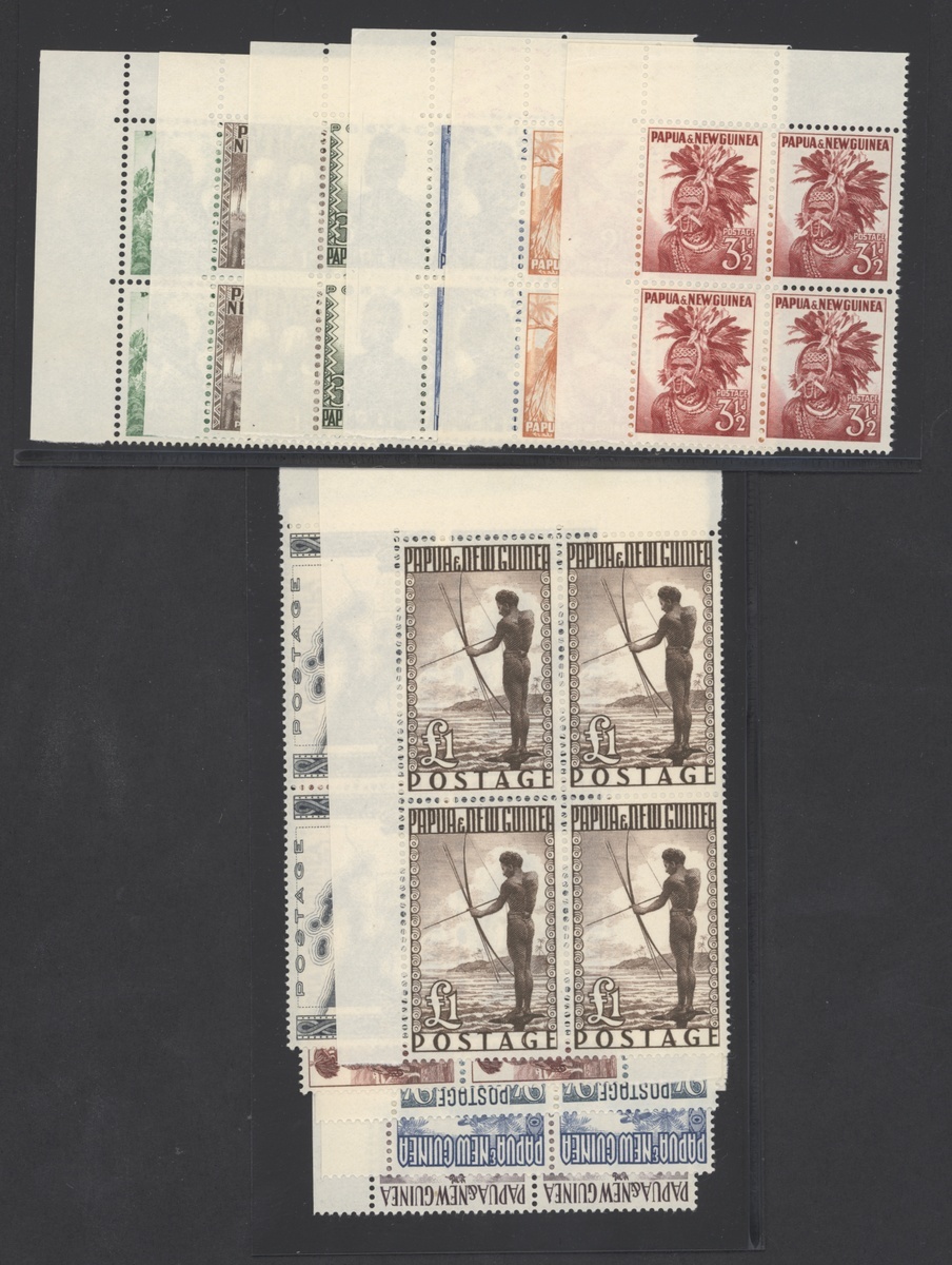 1952 ½d. to £1 set of fifteen in corner block of four, fine unmounted mint. S.G. 1-15 less 6a