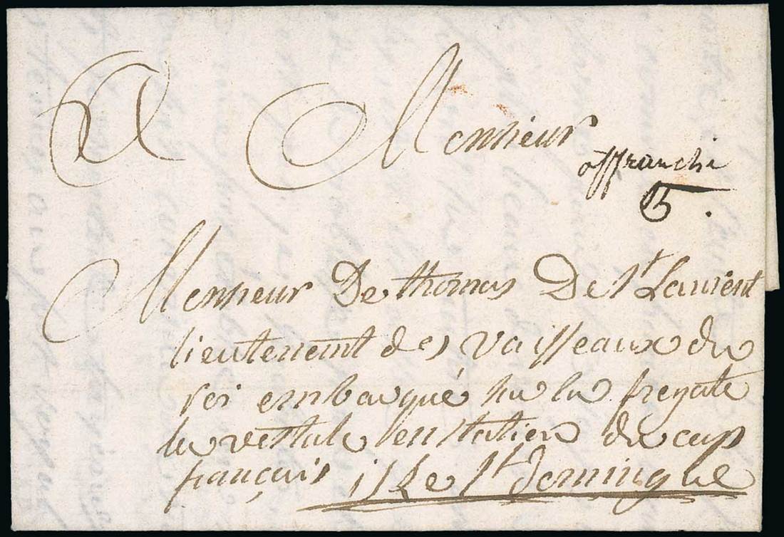1890 (March 24) entire letter from Morne Fortunè to Haiti, written by a French Officer, endorsed "affranchi" and with indistinct rate marking below, without postal markings as usual; fine. Photo