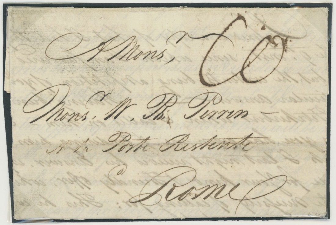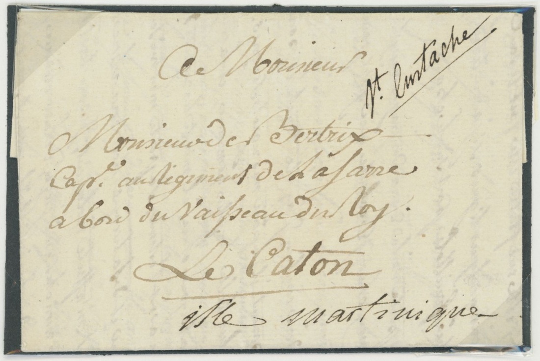 1781 (26 July) entire letter headed "Monarch St. Eustatia" to Portsmouth, rated "4" and showing, on reverse, light unframed