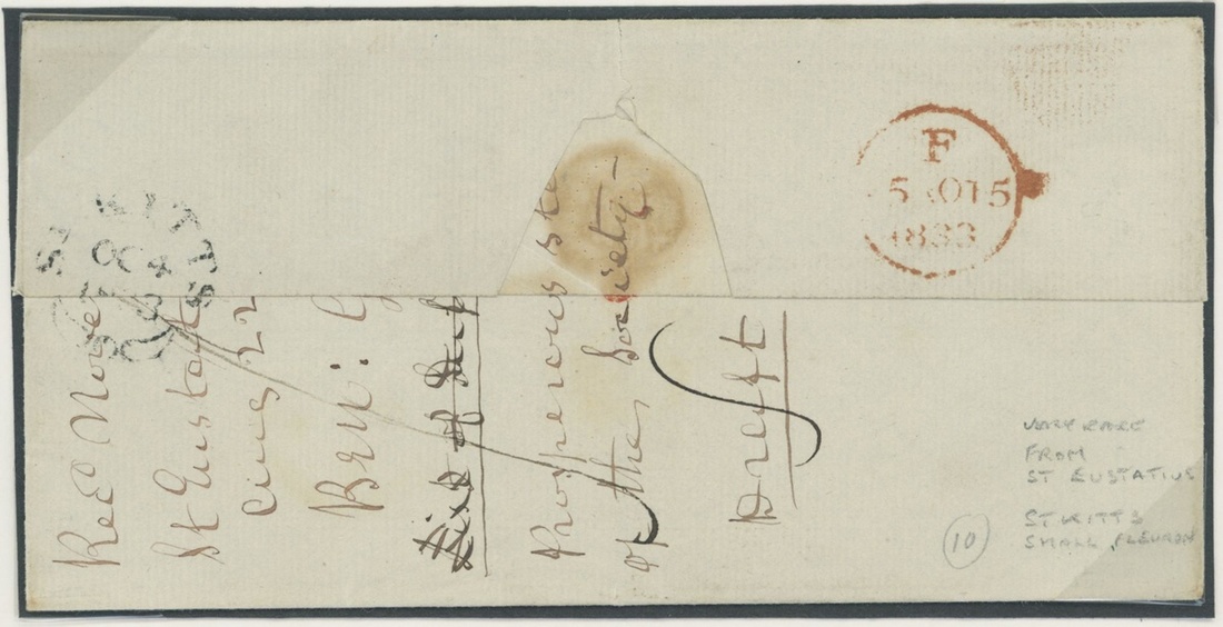 1833 (22 Aug.) entire to London, rated "2/2" and showing, on reverse across join,