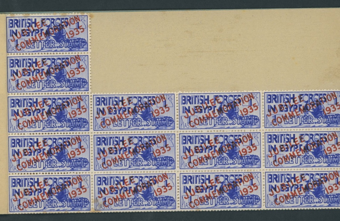 Note: These stamps were available from army canteens, but the whole issue of only 27,000 were sold out in three days. With a purchase limit of ten stamps per customer, full panes are rare, let alone even part booklets.