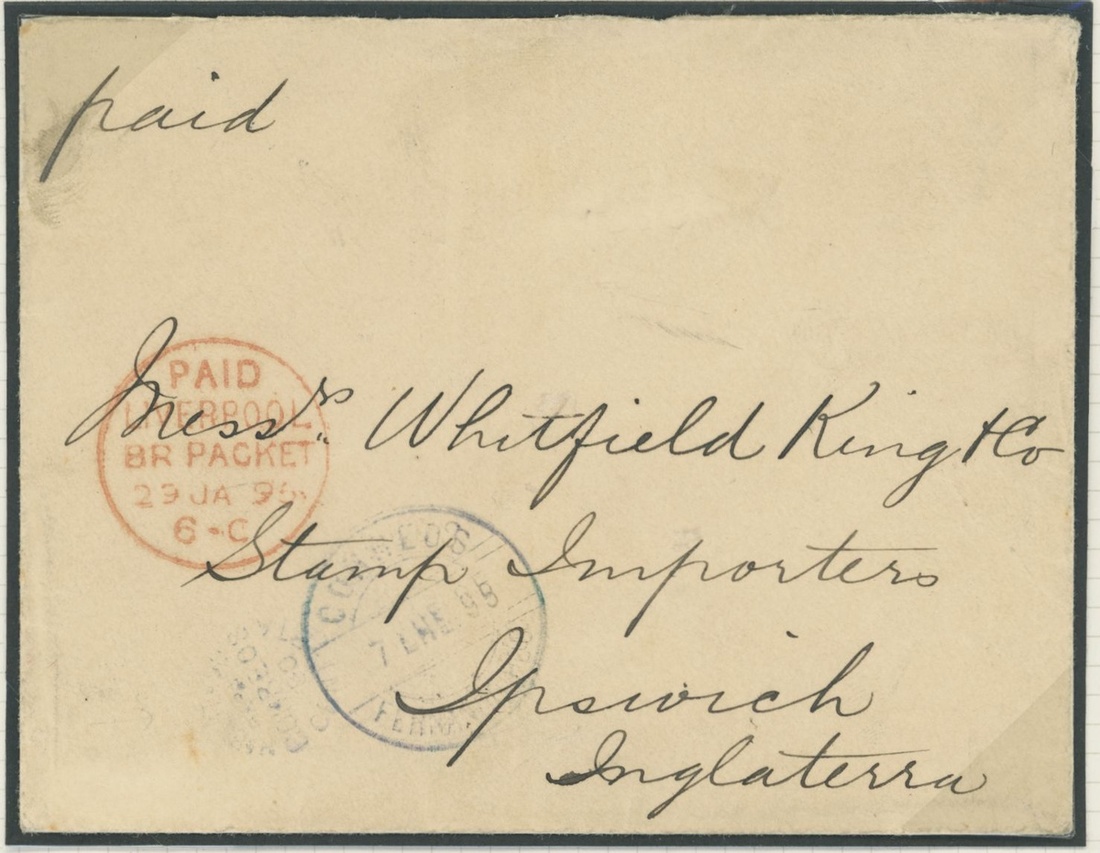 1895 (7 Jan.) envelope endorsed Paid to Whitfield King in Ipswich with light "