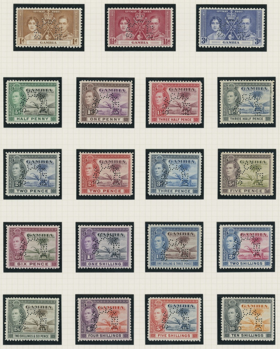 1937 Coronation set and 1938 ½d. to 10/- set of sixteen, all perforated "