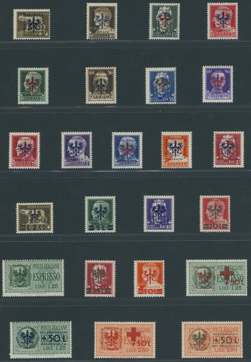 1944 5c. to 50L. on 1L. 75, Air set, Air Express 2L., Express letter 1L. 25, Postage Due set, Red Cross, Homeless Relief. Air Orphans, Winter Relief, large part original gum; fine. S.G. 65-117, £840
