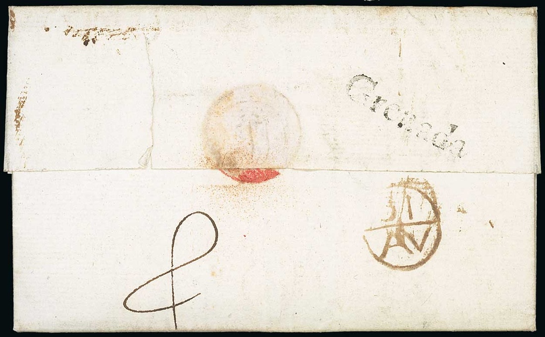 1784 (13 July) entire letter to London, marked "p. Lovely Ann, Capt. Harris", rated "4", showing unframed