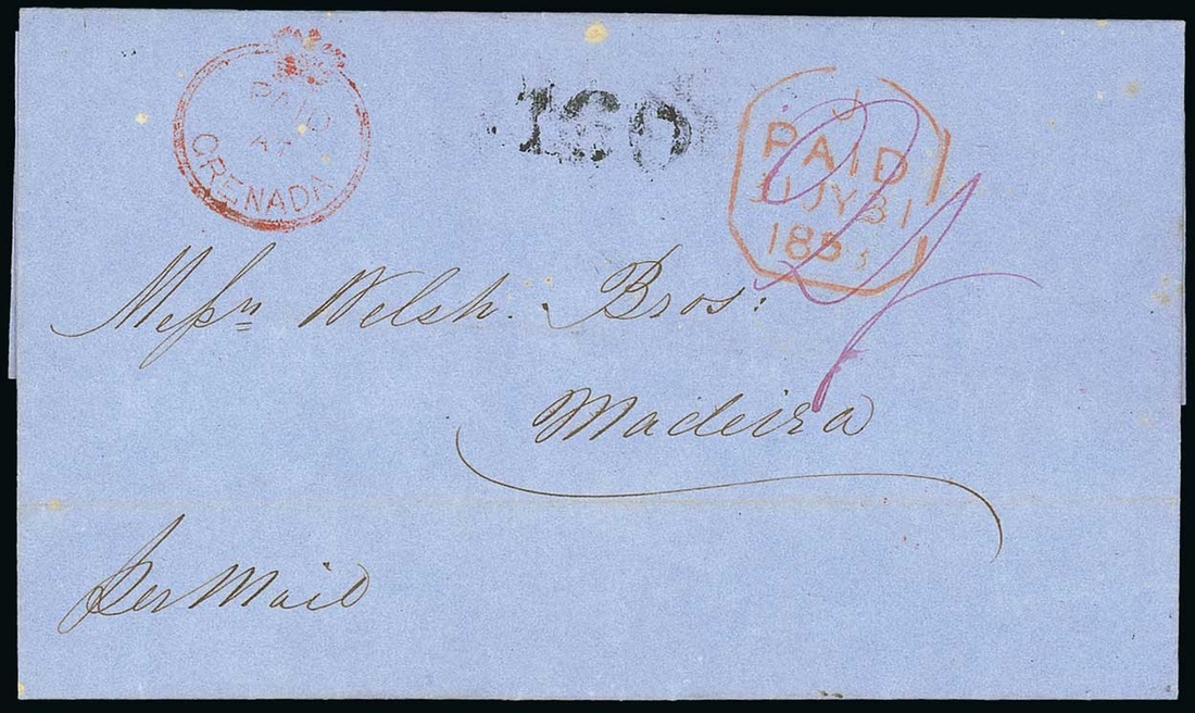 1853 (9 July) envelope to Madeira, rated "2/-" in red, showing mainly fine
