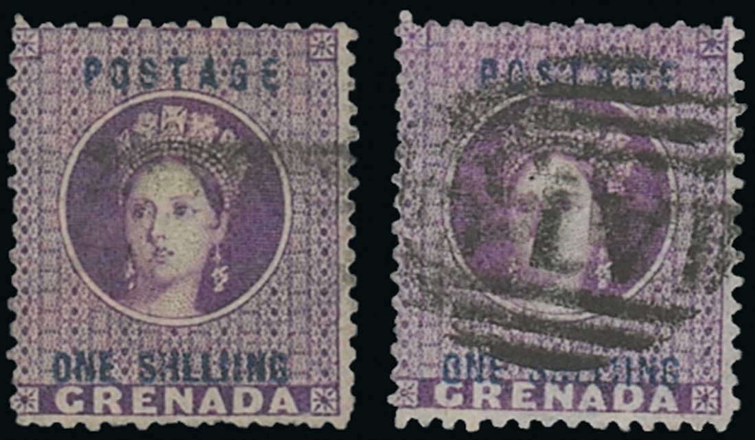 1875 (July) 1/- deep mauve, two examples both showing variety