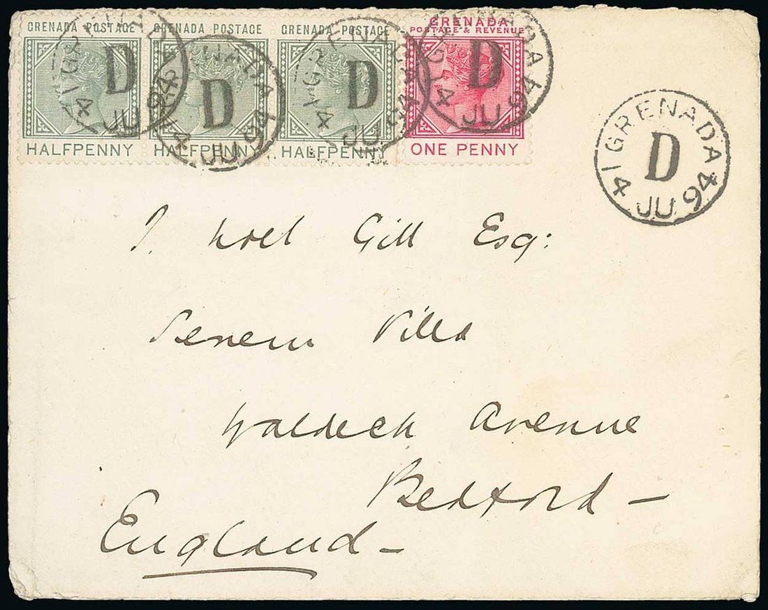 1894 (14 June) envelope from Grenville to Bedford, bearing 1883 ½d. (3) and 1d., each cancelled by fine