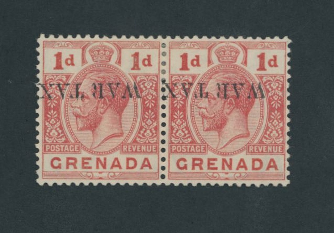1916 (1 June) War Tax 1d. red horizontal pair, variety overprint inverted, unused without gum, colour slightly faded, otherwise fine. S.G. 109a, £550
