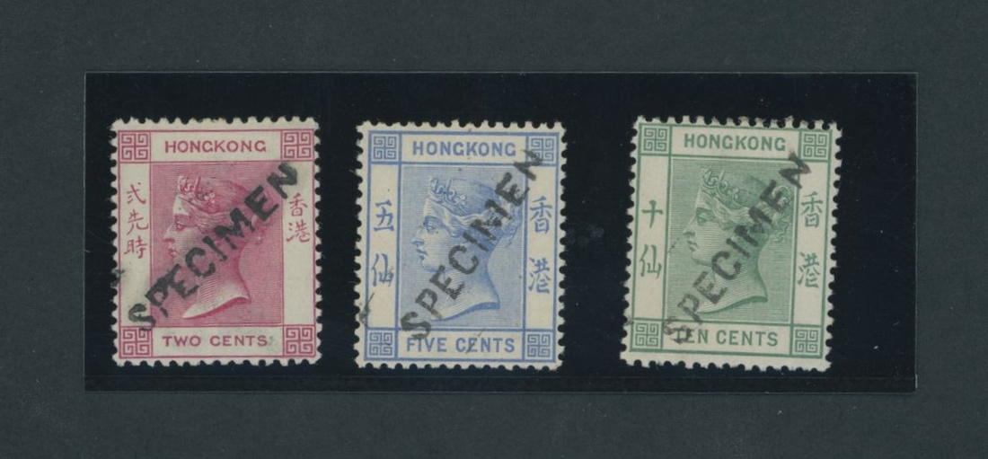 1882-96 2c., 5c. and 10c. deep blue-green, each diagonally handstamped "