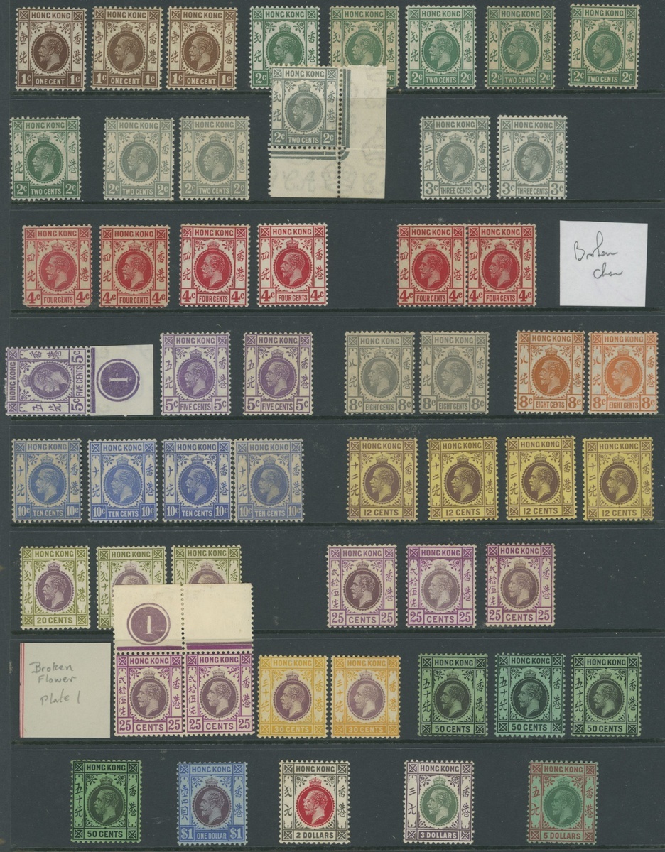1921-37 1c. to $5 set of eighteen with duplication of lower values and including 4c. broken character and 25c. broken flower variety in plate number pair; large part original gum; a few with age marks or occasional perf. tone. S.G. 117-132. (53)