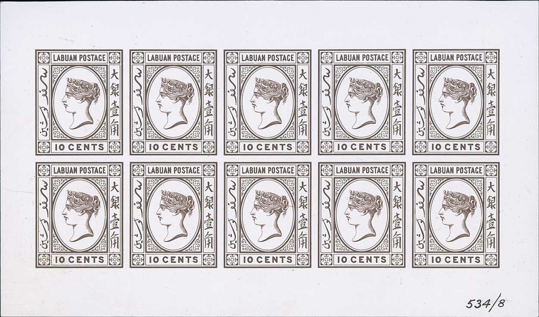 1880-82 10c. brown imperforate plate proof sheet of ten (5x2) on thin card marked "534/8" in ink at foot. Fine and rare. Photo