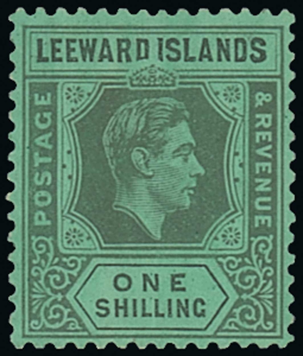 1938 1/- black on emerald, variety