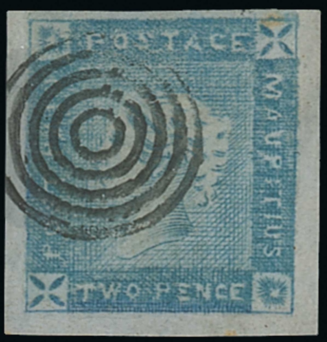 1859 Lapirot, intermediate impression, 2d. blue [1], good to large margins all round, concentric circles cancellation fine. R.P.S. Certificate (2017). S.G. 38, £1,400. Photo