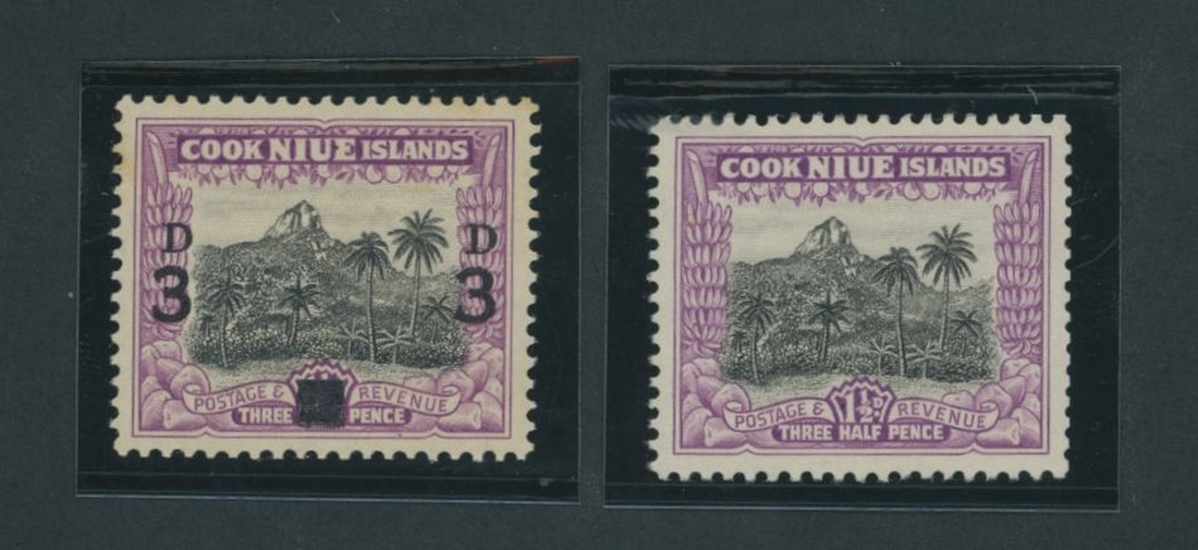 1940 (2 Sept.) 3d. on unissued 1½d. black and purple, variety surcharge omitted, unused without gum and ex the printer's archive and offered with the issued surcharge stamp for comparison. B.P.A. Certificate (1990)