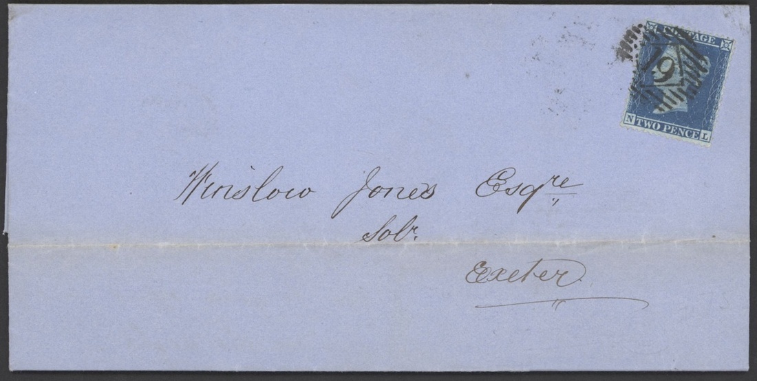 2d. NL, well centred, tied by London "19" barred oval to entire letter to Exeter, dated 29 March 1858; fine