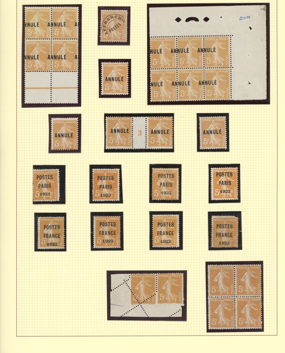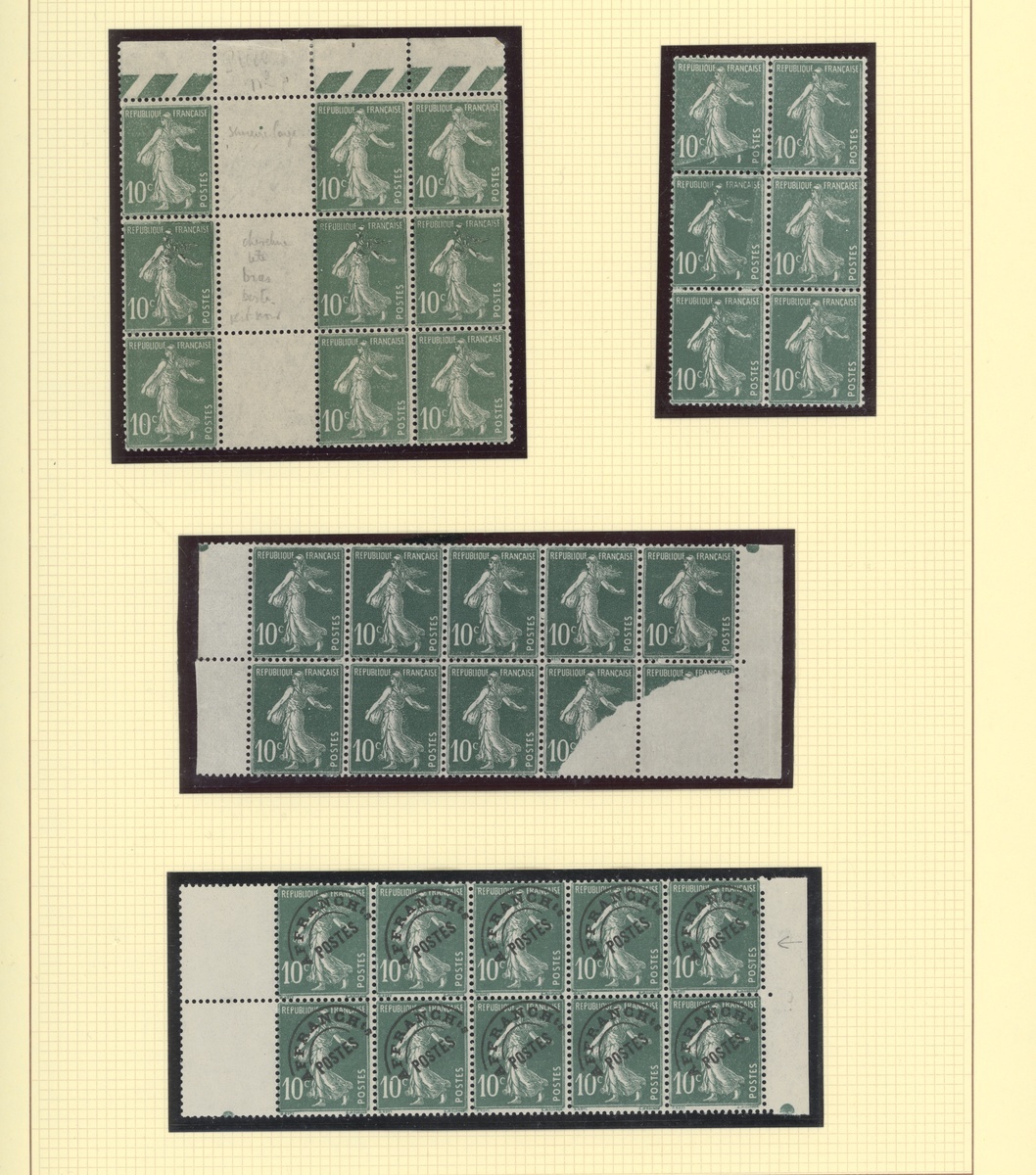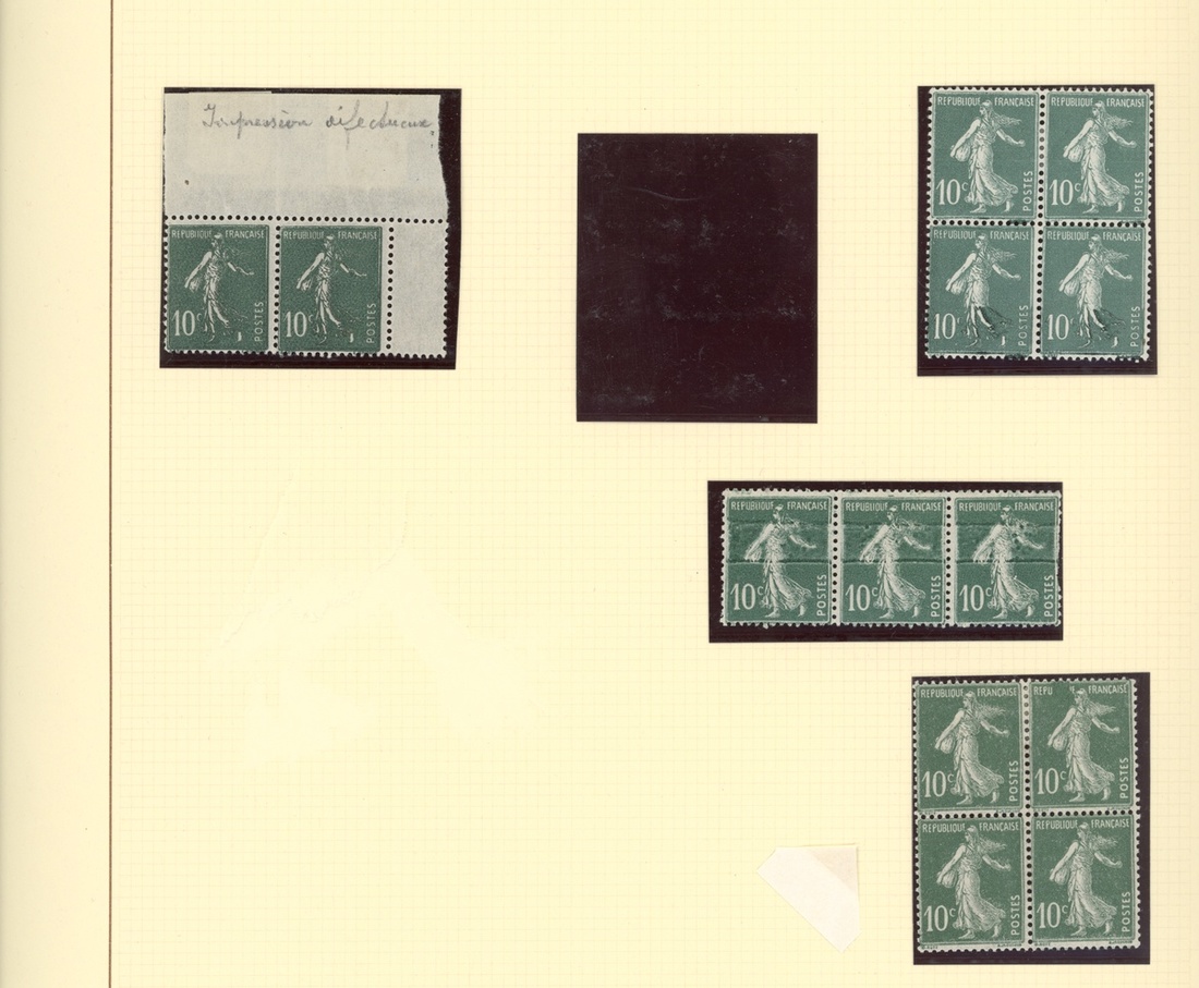 5c. orange (90) with Millesimes, pre-printing paper creases, misperforated, precancels with "Postes/Paris/1921" unused, etc., 10c. green (83) with defective impression, pre-printing paper creases, incomplete impression, pre-cancels, booklet with "Phena" pane of ten,, 30c. red (29), 50c. blue (30) with imperf. single, Millisimes (4), etc., chiefly fine. Spink Maury 158-161