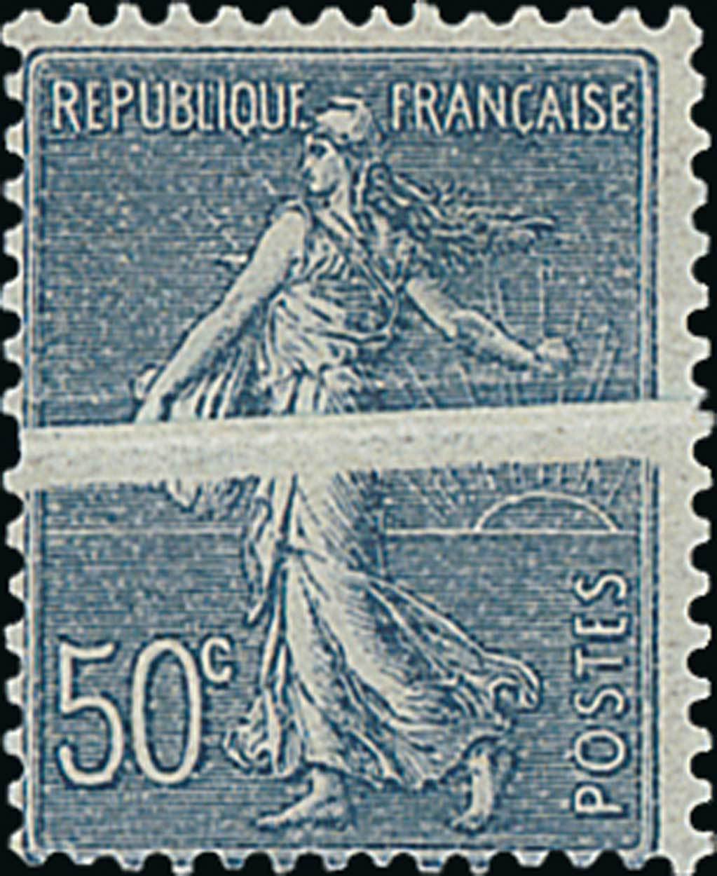 50c. blue, displaying a striking horizontal pre-printing paper fold (pli accordeon), unmounted mint; fine. Spink Maury 161l. Photo