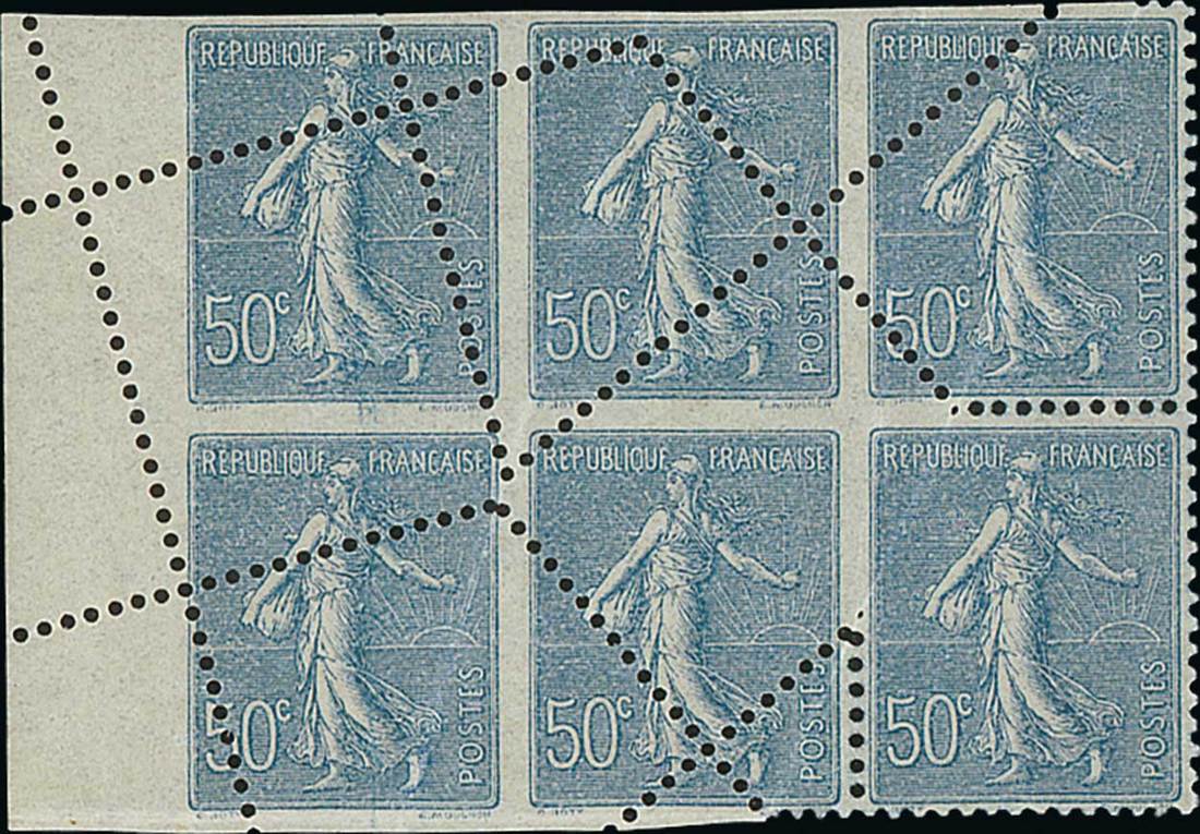 50c. blue, block of six (3x2) from the left of the sheet displaying a fine pre-perforating paper fold affecting all six stamps; unmounted mint, fine. Spink Maury 161. Photo