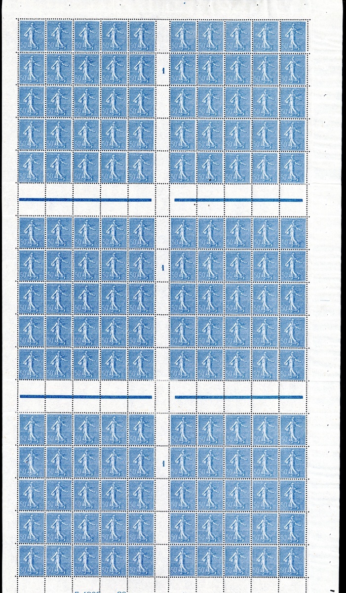 50c. blue, complete sheet of 150 (6 panes of twenty-five), unmounted mint, folded at places, fine. Spink Maury 161, €12,300