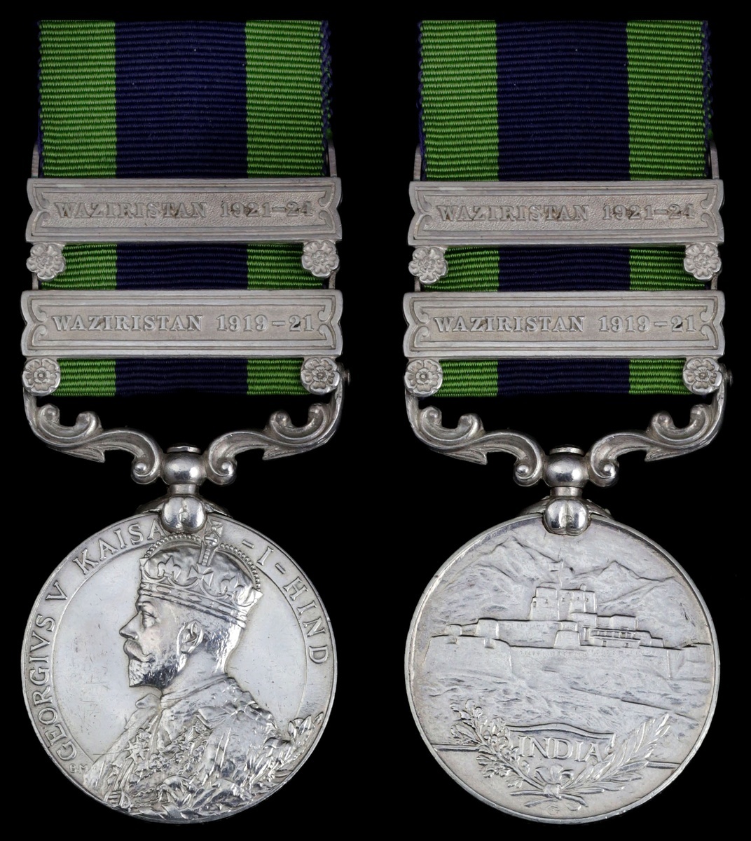 India General Service 1908-35, 2 clasps, Waziristan 1919-21, Waziristan 1921-24 (6077050 Pte. A. Kemp, The Queen's R.), very fine