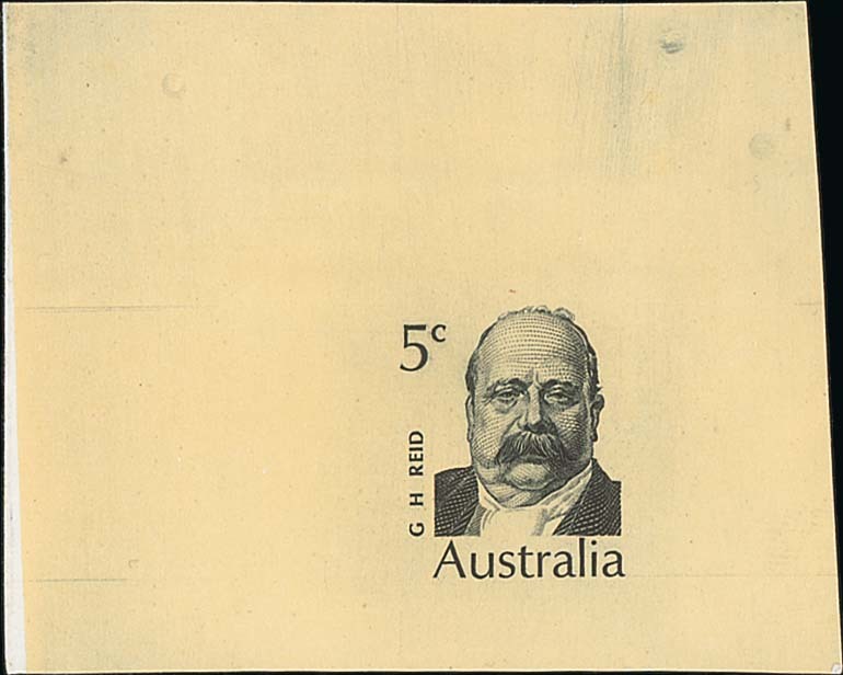 Reid 5c. engraved die proof in black on yellowish surfaced card (65x52mm.), fine. Photo