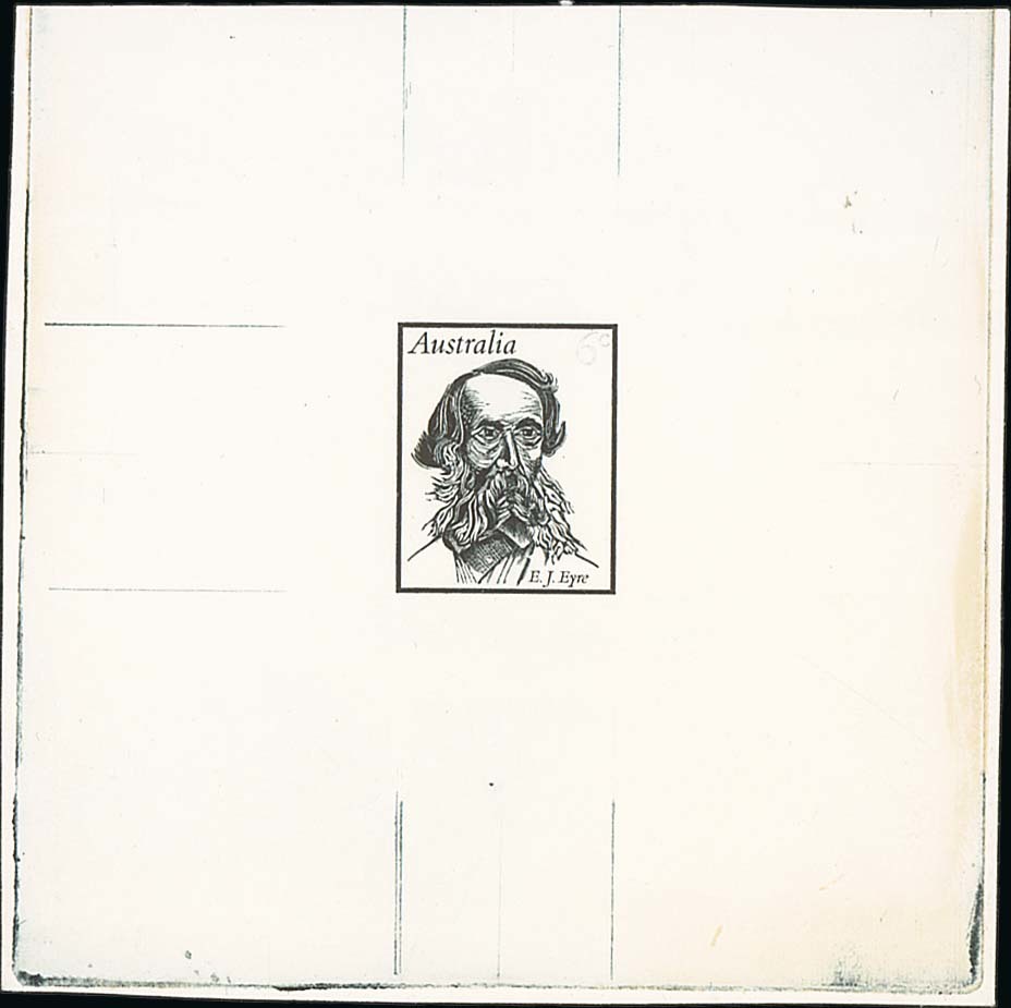6c. Eyre engraved die proof without denomination, in black on white surfaced card (78x78mm.), fine. Photo