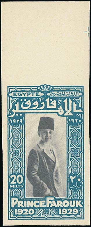 1929 Prince's Birthday 5m. to 20m. imperforate with "Cancelled" on the reverse, all from the top of the sheet; fine and rare. Only 50 sets printed thus. S.G. 178-181. Photo