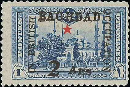 Overprinted with small five pointed Star, 2a. on 1pi. blue, original gum, superb and rare. Only 59 surcharged. B.P.A. Certificate (1968). S.G. 8, £10,000. Photo
