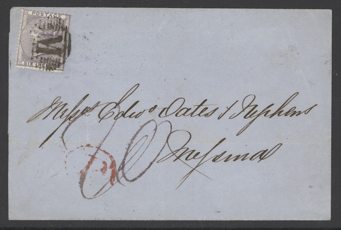 1858 ( Jan.) double rate entire to Messina bearing 1856 6d., clearly tied and showing oval-framed