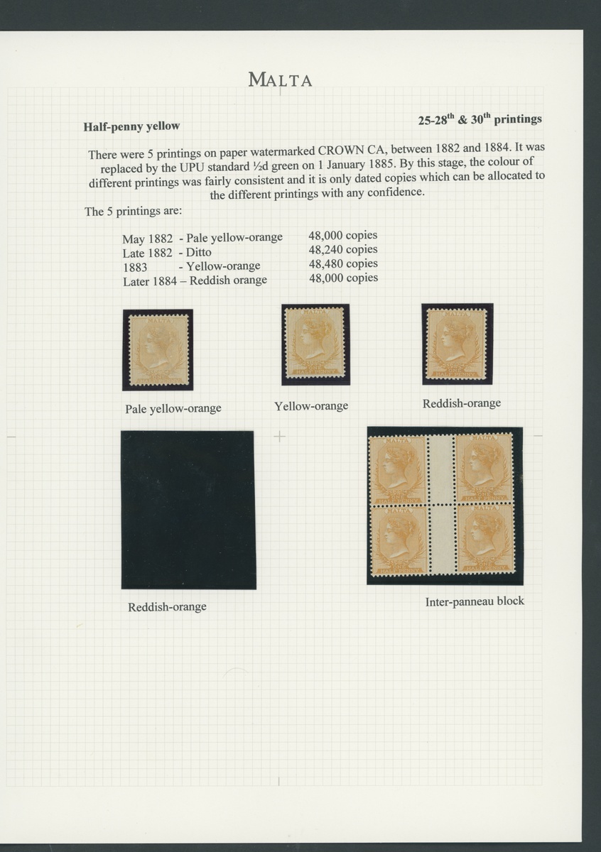The mint collection with all S.G. numbers represented (owner's identification) and some additional including no watermark blued paper (2 regummed), CC (34 including buff block of four - stains on reverse, three golden yellow aniline and four rough perf) and CA (32 including two corner blocks of twelve); condition a little mixed as usual therefore viewing strongly recommended. S.G. 1-19