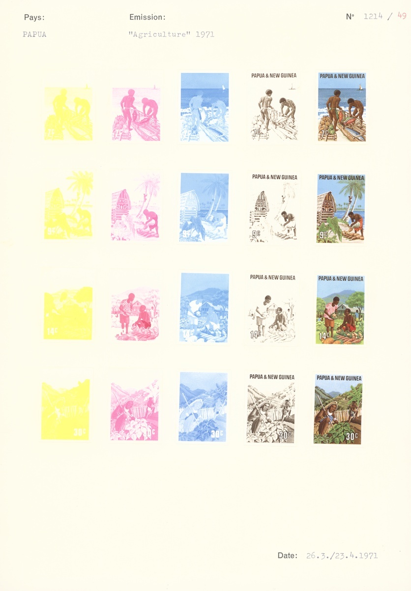 1971 (Aug.) Primary Industries set of four comprising four colour separations and complete design for each value. (16 proofs)