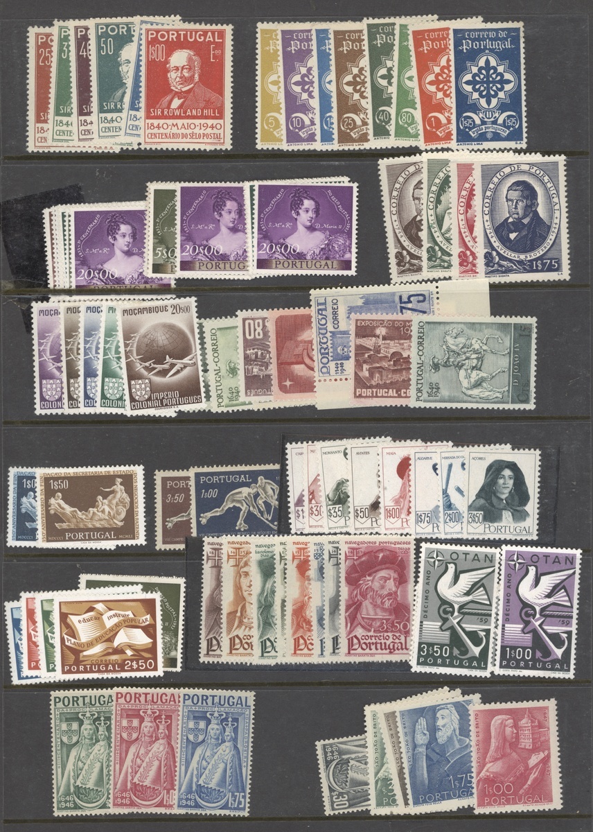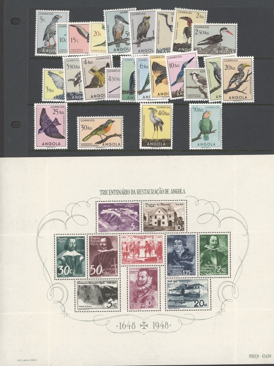 Mint selection on stockpages, including 1940 Legion set, 1947 Costumes set and miniature sheet, 1945 Navigators miniature sheet (4), 1953 Stamp Centenary, Colonies with Angola 1951 Birds, etc., chiefly good to fine