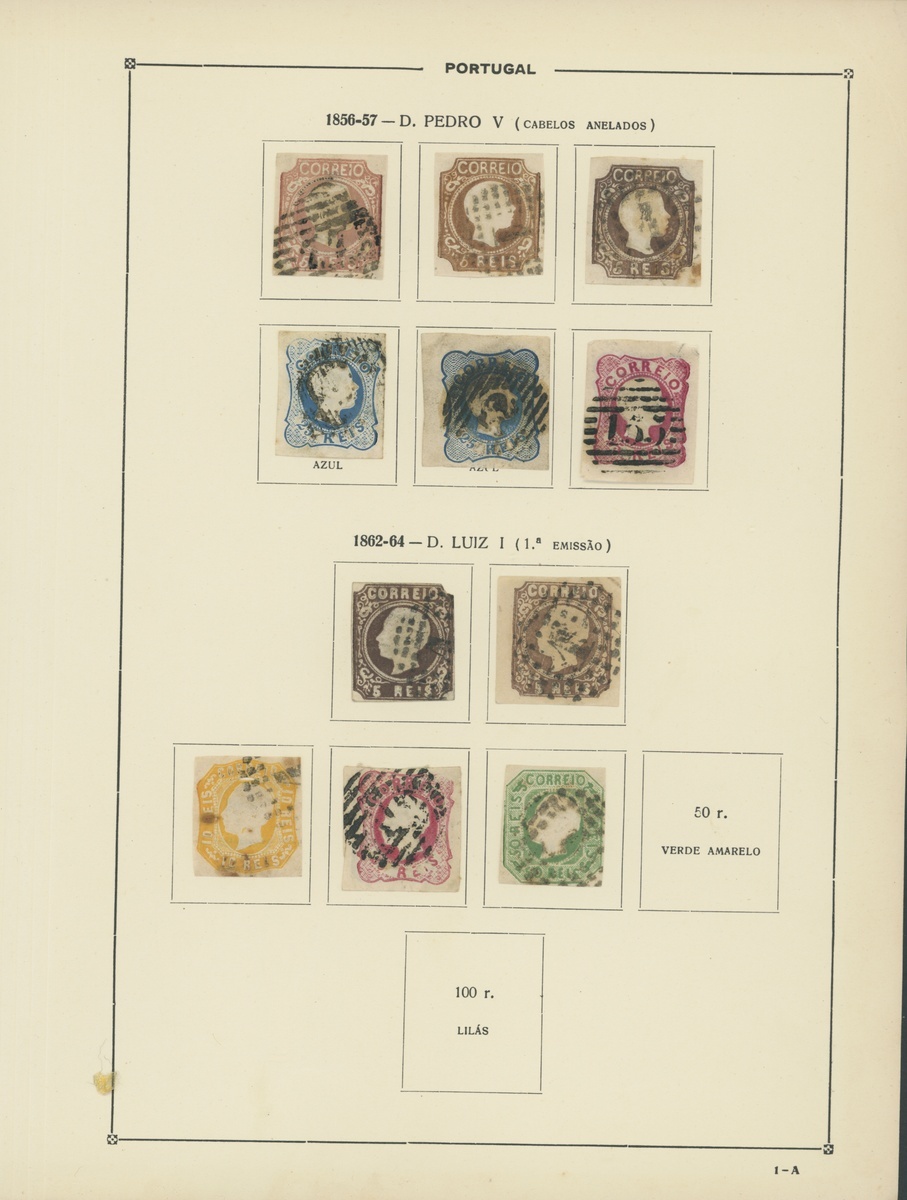 1853-1949 mint and used collection in printed pages, including 1853 5r., 50r., 1855 100r., 1866-67 curved label imperf. 120r., 1870-84 with values to 300r., 1000r., 1882-87 500r. black, 1894 Prince Henry set, 1895 St. Anthony set, 1933 Colonial Exposition, 1940 Legion set, 1941 Costumes, 1943-49 Caravel set, 1946 Castles, 1947 Costumes, 1949 Portraits, miniature sheets with 1941 Centenaries, 1941 Rowland Hill 1941 Costumes, 1945 Carmona, 1946 Castles, 1946 Bank, 1947 Costumes, 1949 Portraits, etc., mixed condition with some stuck down