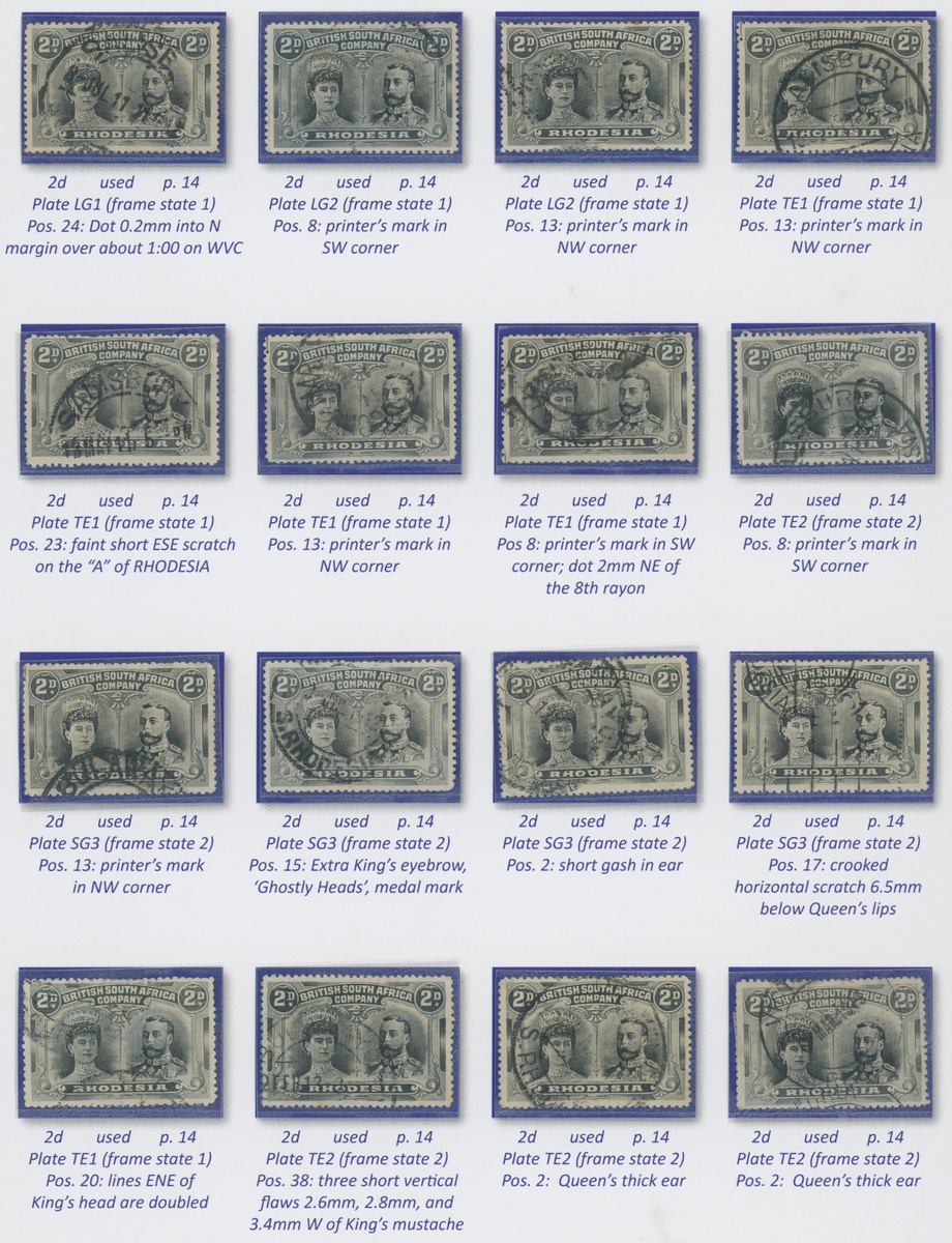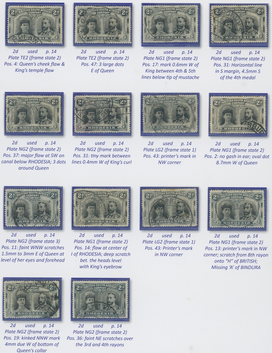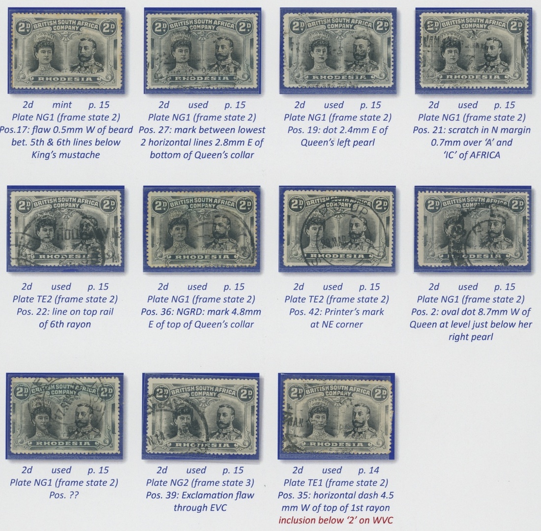 1910-13 Double Head 2d. used study (41) from a range of printings and with all but one plated, comprising perf. 14 (31) including Short Gash [2] (2) and [15], various printer's marks, and perf. 15 mint (stained perfs.) and used (10)