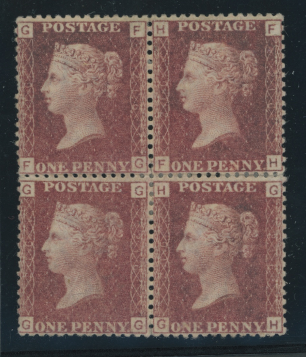 Plate 216: FG-GH block of four, large part original gum; pencil notation on the reverse and some typical gum wrinkling. Well centred