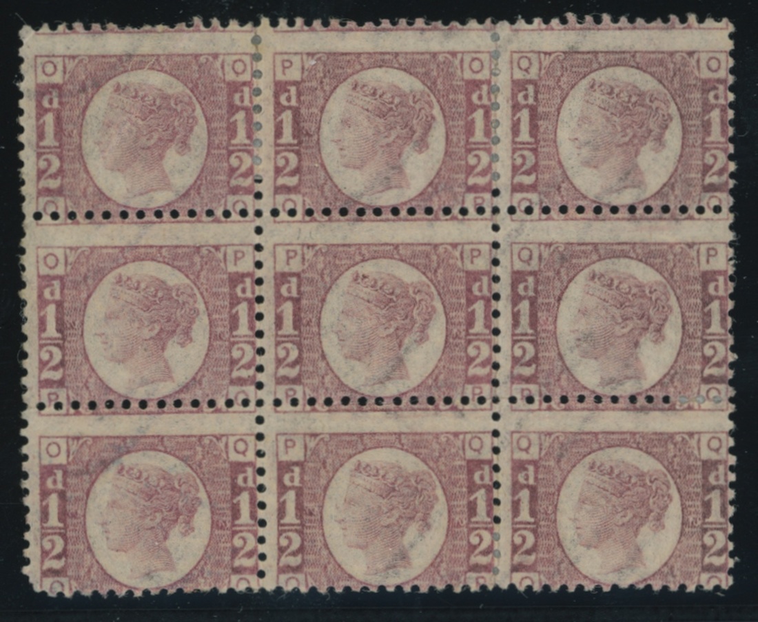 Plate 12: OO-QQ block of nine, large part original gum with some typical gum wrinkling; some reinforced perfs. and centred low