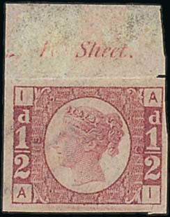 Plate 13: Imperforate imprimatur lettered AI, from the top of the sheet with inscription, unused without gum; folded between stamp and margin; fine. Specialised from £1,500. Photo
