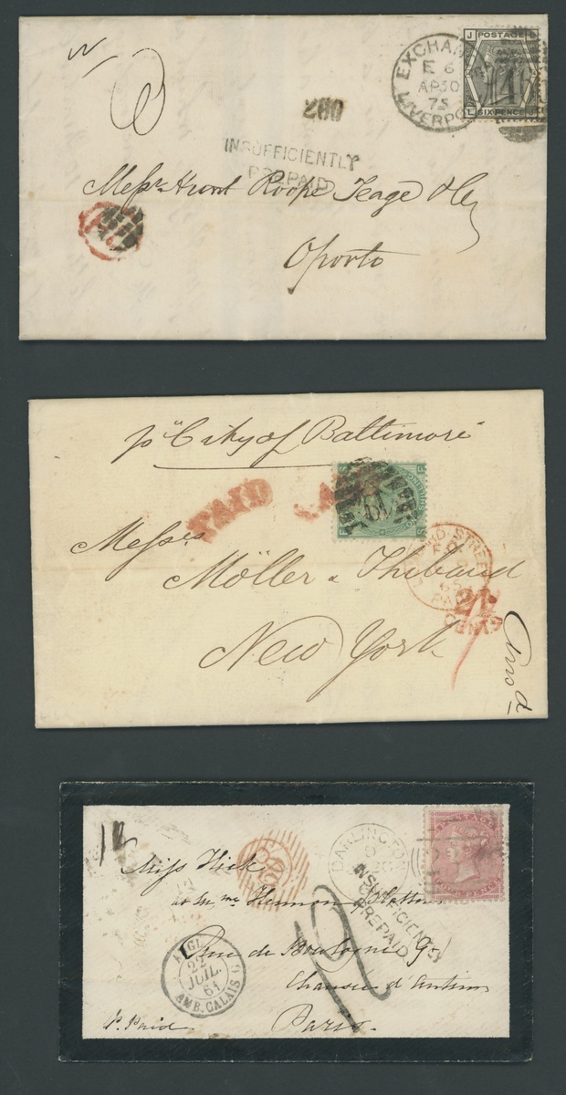4d. on mourning envelope from Darlington to Paris, marked