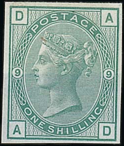 1/- green, Plate 9: Imperforate imprimatur lettered AD, large part original gum, good margins, fine. Specialised. £3,500. Photo