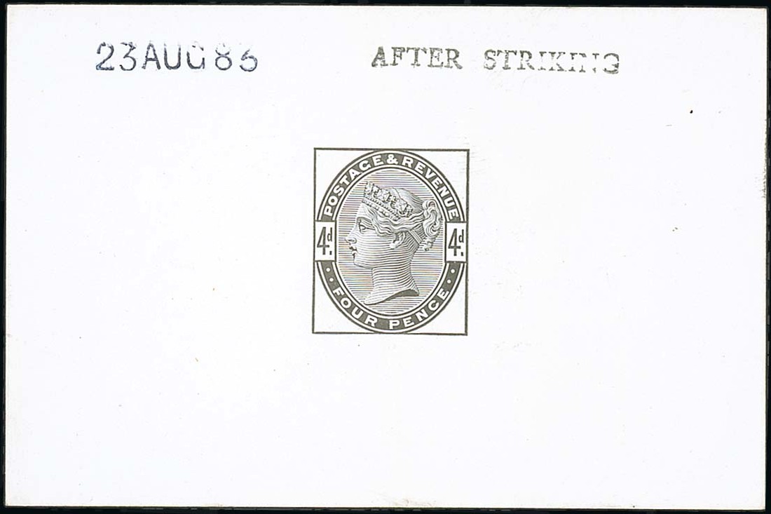 4d. die proof in black without corner letters, on glazed card (92x60m.), marked