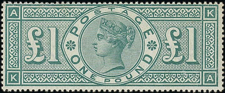 £1 green, KA, large part original gum; light vertical bend. S.G. 212, £4,000. Photo