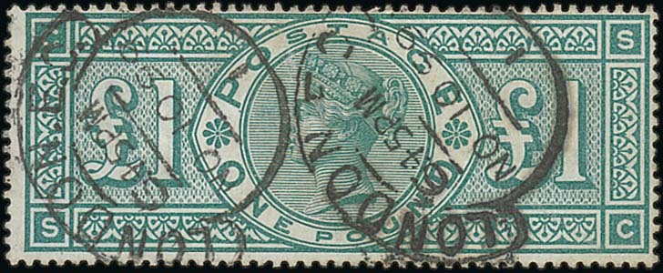 £1 green, London E.C. hooded datestamps of 10 Nov. 1899, fine. S.G. 212, £800. Photo