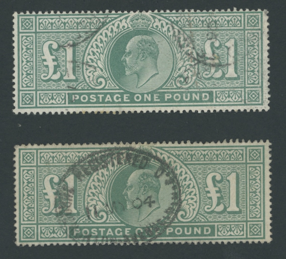 £1 dull blue-green, 1911-13 Somerset House £1 deep green, used, fair to fine. S.G. 266, 320, £1,575