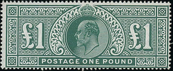 £1 deep-green, unmounted mint; minor wrinkles as should be expected. Fresh and fine. S.G. 320, £3,000. Photo