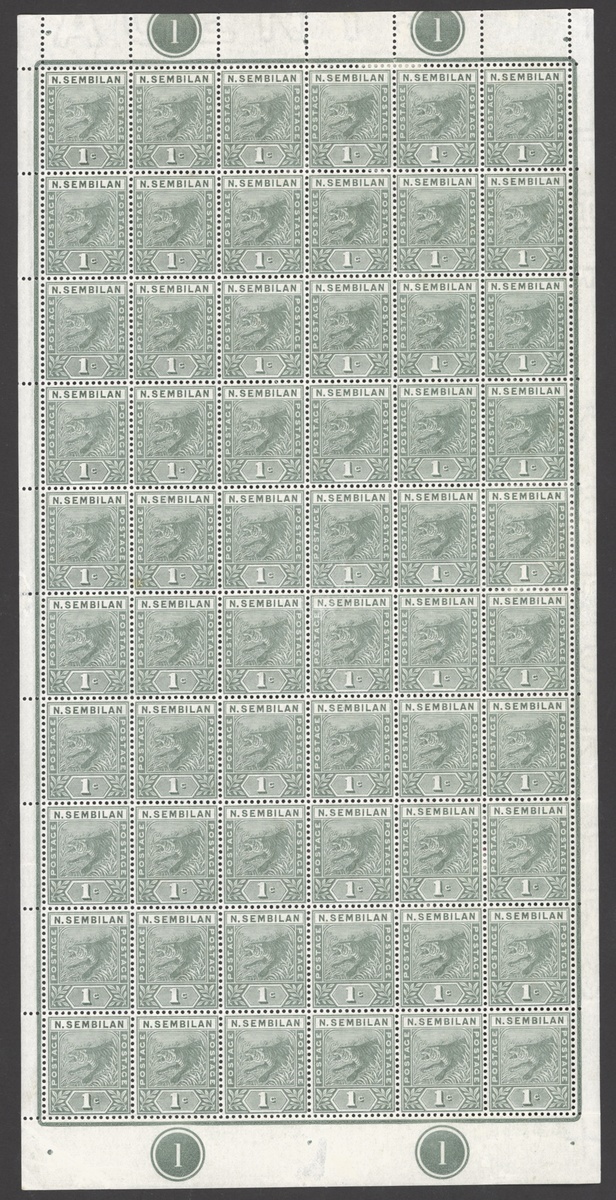 1891-95 CA 1c. green, a complete right hand pane of sixty, some red marks on reverse, otherwise fresh and fine mint. S.G. 2, £195+