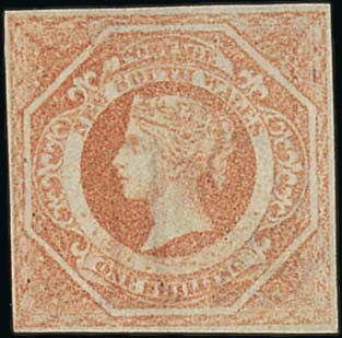 1854-59 Diadem 1/- pale red with close to small margins, unused without gum, fine. S.G. 100, £5000. Photo