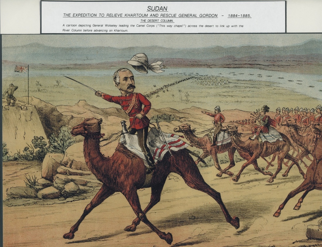 1884 "Nile Expedition" cartoon illustrated Christmas cards Nos. 1 (minor imperfections), 2 and 3 (photocopy), 1885 (5 Feb.) P.O. Telegram from Cornhill to Penygroes "Khartoum fell on twenty-sixth January supported by treachery. Wilson found it in hands of enemy. Fate of Gordon uncertain", 1885 (10 Feb.) Military Telegraph marked "Korosko" at top and with Field Telegraph "